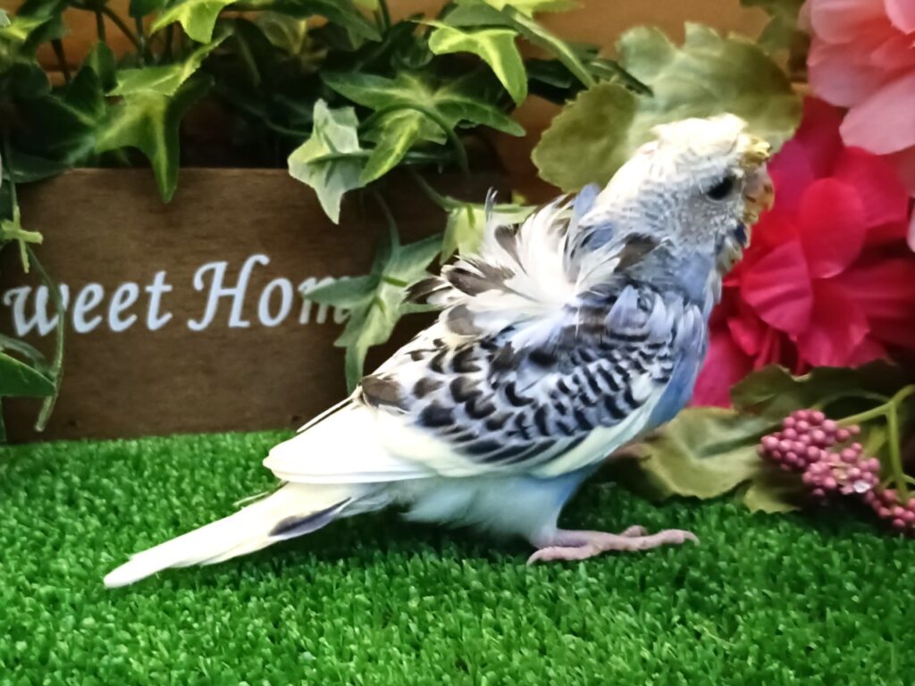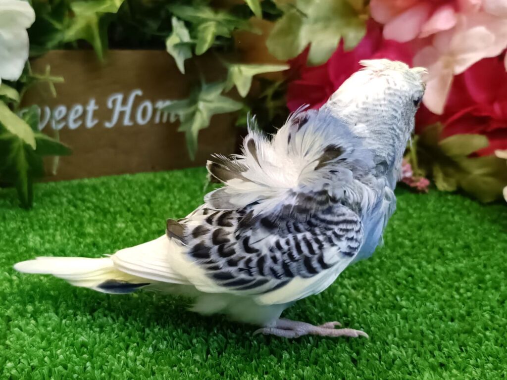 頭の梵天と背中の羽衣が特徴のインコです。
