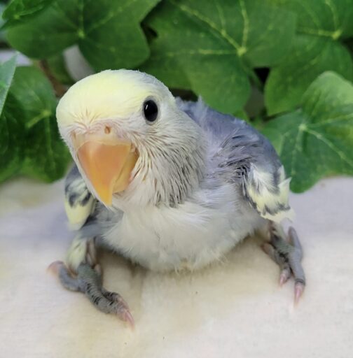 挿し餌を食べているヒナになりますので手乗りに育てることも可能な子です。