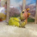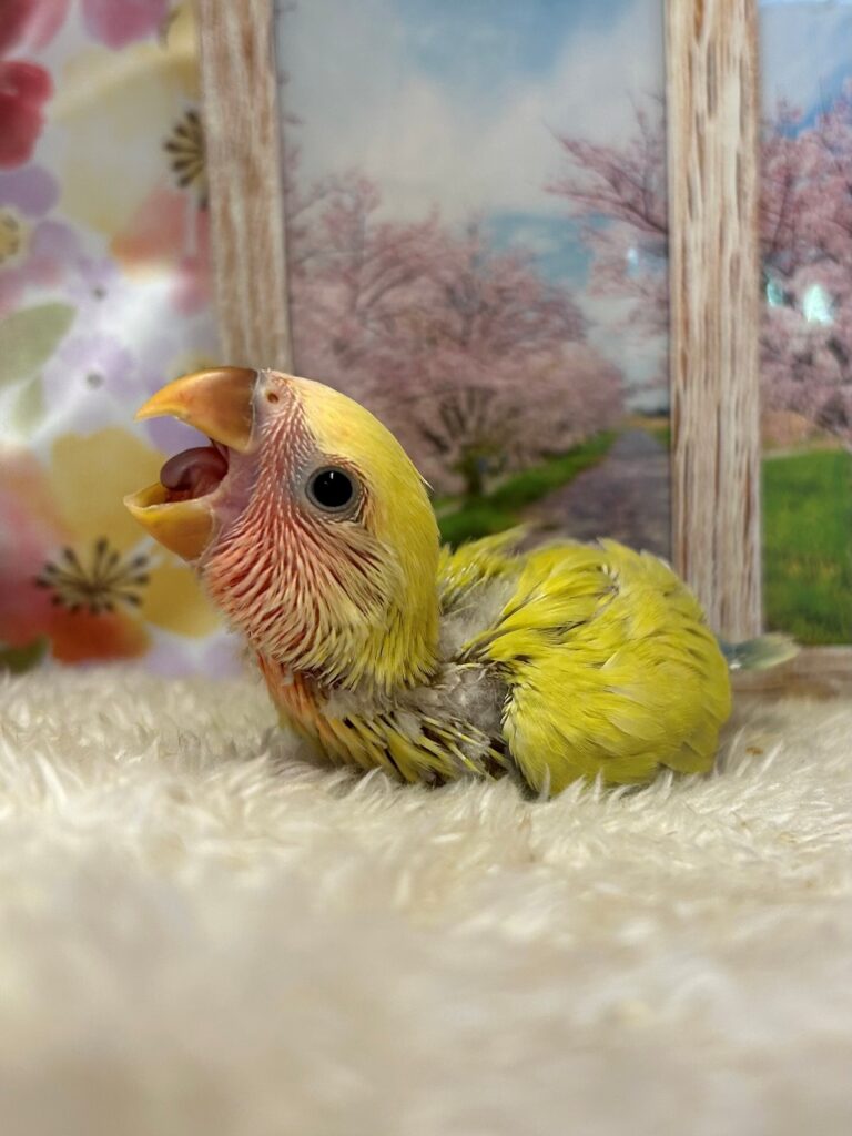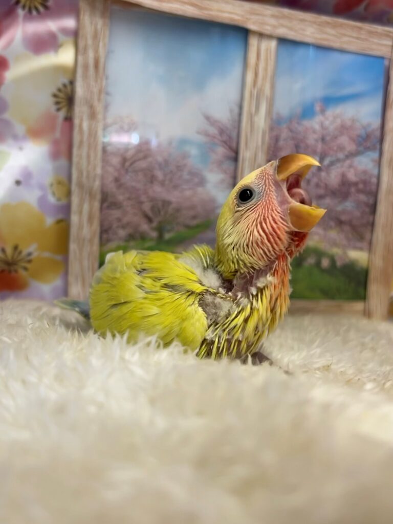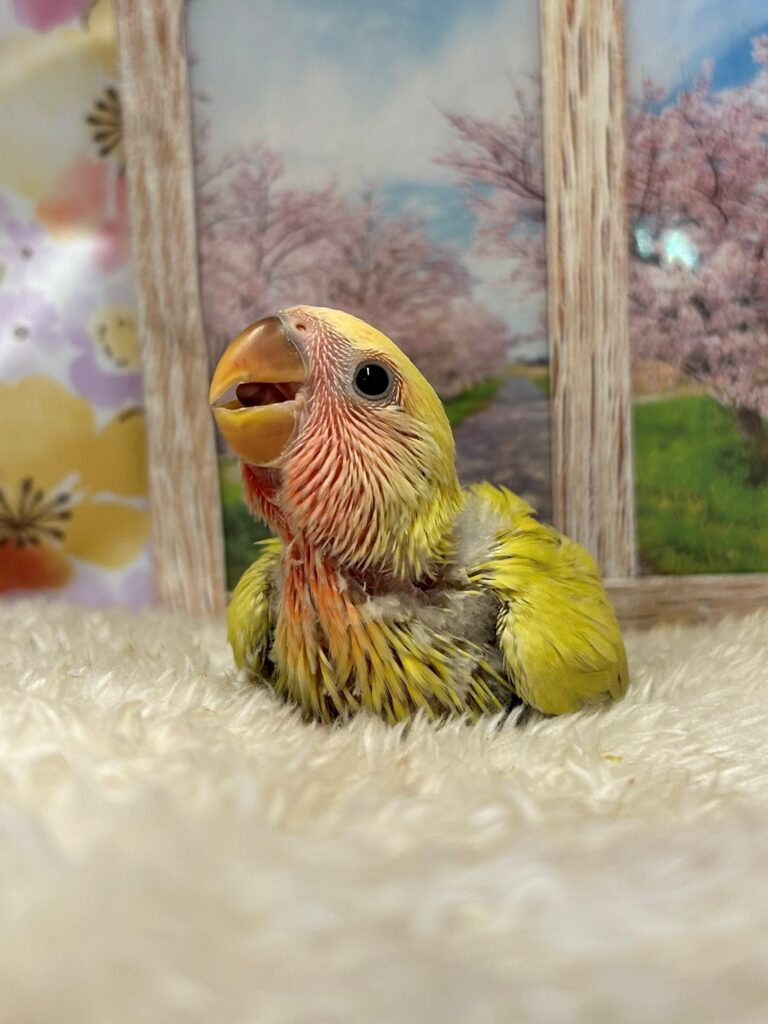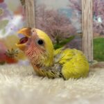 鮮やかなゴールデンのコザクラインコヒナちゃんです♪