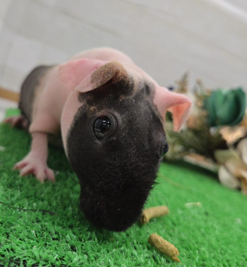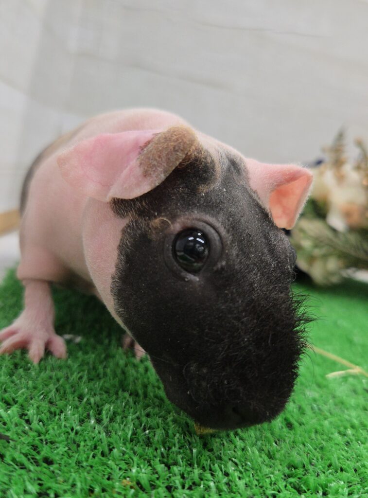 体にほとんど毛のないモルモットの品種改良種です。