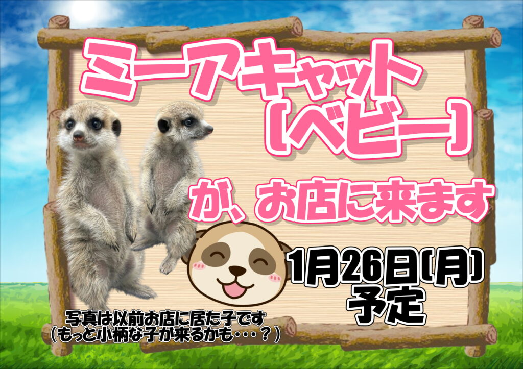 ミーアキャット(ベビー)がお店に来てくれます💓 サイトのお知らせ 2026.01.23 ペットプラザ清須東店 皆さんこんにちは、ペットプラザ清須東店ですミーアキャットの赤ちゃんがお店に来てくれます🐾来週の月曜日、1/26(月)を予定しておりますぜひお店に会いに来てくださいね💓 お知らせ一覧へ戻る