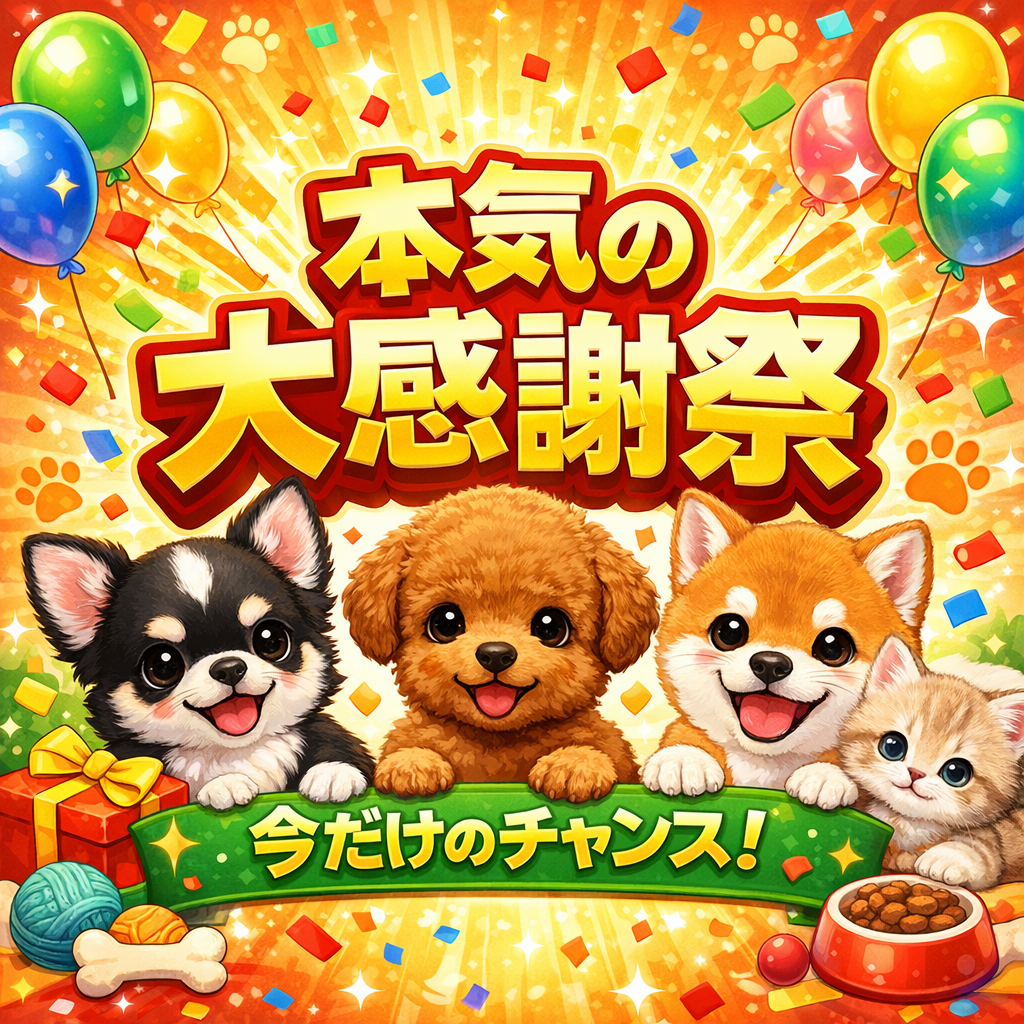 本気の大感謝祭開催中です! サイトのお知らせ 2026.03.28 ペットエキスポ恵那店 3/31までイベント価格になっております。この春からわんちゃんねこちゃんと、新しい生活を始めてみませんか? お知らせ一覧へ戻る