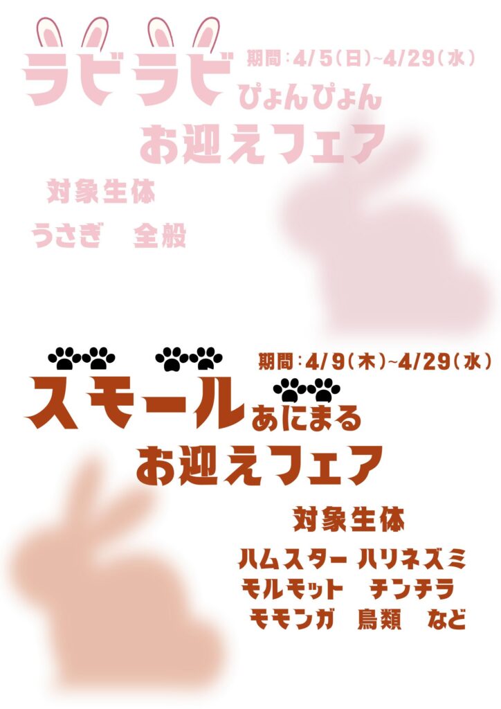 ★らびらびお迎えフェア スモールあにまるお迎えフェア 同時開催のお知らせ★