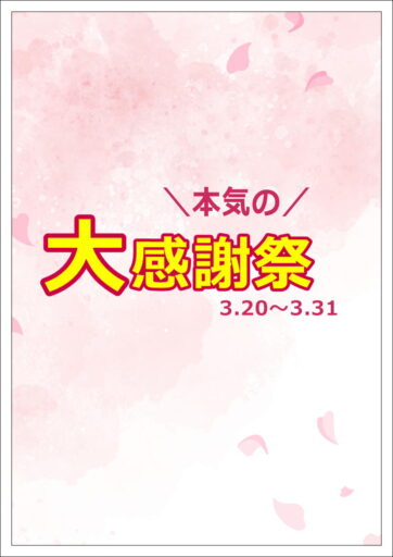 3/20(金)~3/31(火)まで本気の大感謝祭を開催いたします!